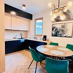 Az apartman továbbá mosogatógéppel, hűtővel és főzőlappal ellátott felszerelt konyhával büszkélkedik. A Rudnickiego 02 buszpályaudvar innen gyalog 10 percre van.